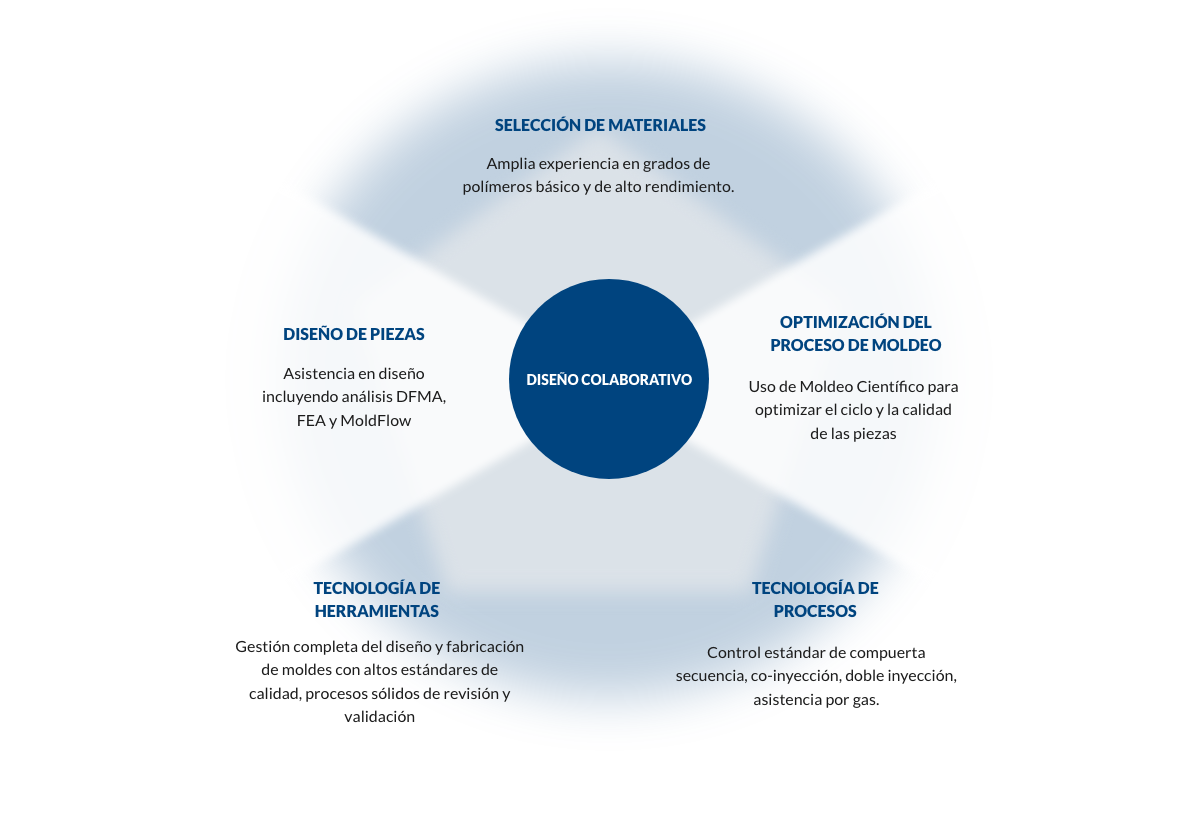 Ofrece manufactura de partes plásticas a través de moldeo por inyección de termoplásticos, así como operaciones secundarias, sub ensambles y ensambles.