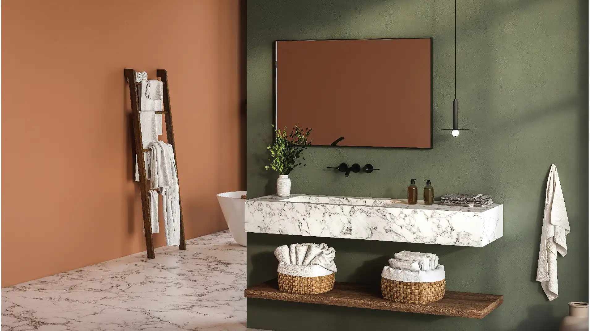 Deja que la naturaleza entre a tu baño, da igual si es a través de texturas de piedra natural, mármol u otro tipo de acabado.